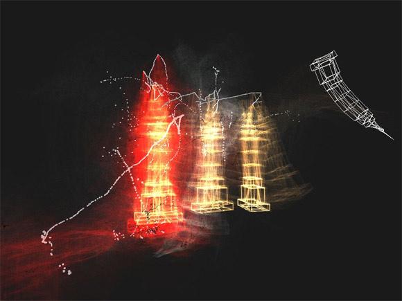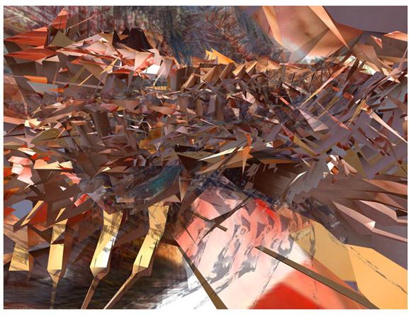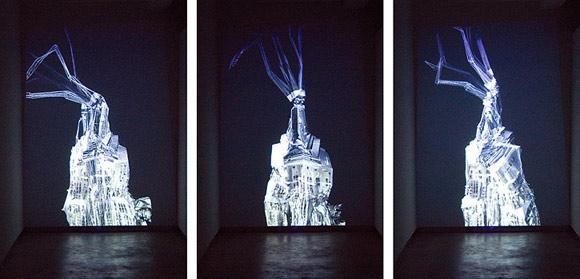 KK3.sculpt is the first piece Napier created that generated a virtual sculptural form. Several seconds of recorded motion are frozen to create what appears to be a solid structure.